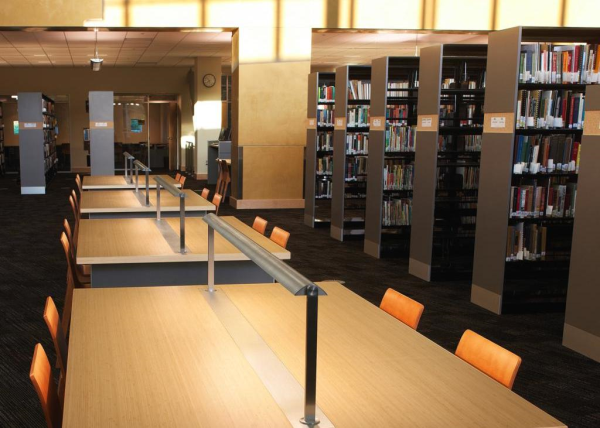 Napa Valley College, McCarthy Library, Napa, CA | Architecture: TLCD Architecture | Lighting Design: O'Mahony & Myer | Lighting: Vode System table-mounted QueRail | Image: George Brown Studio NYC.